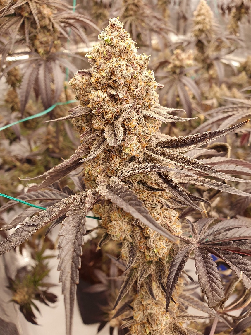 High in myrcene but also fruity at the same time, its perfume is intense, akin to oil based paint. At first, the smell is mostly fruity and floral. However, it then becomes much Kushier and gassier towards the last few weeks of flowering. The use of a carbon filter is paramount if one wishes to avoid “stinking up” the entire neighborhood.